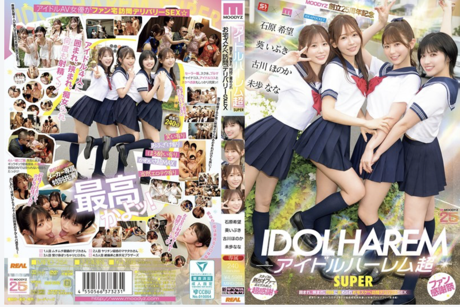 - タイトル:【最新作】アイドルハーレム超SUPER 囲まれ、挟まれ、同時に責められお宅スケベ訪問デリバリーSEX 【MOODYZ創立25周年記念】 葵いぶき 石原希望 未歩なな 古川ほのか